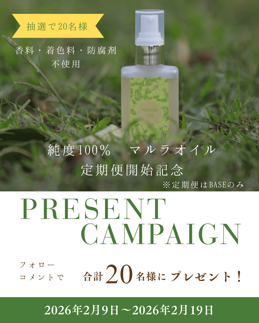マルラオイル定期便販売開始記念 SNSプレゼントキャンペーン